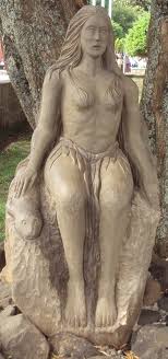 – Descripción: es una sirena o ninfa muy hermosa, de larga cabellera rubia, cuyo encanto y dulzura son incomparables. Emerge desde las profundidades del mar, vestida solo con algas, a bailar en la playa. Está casada con el Pincoy.