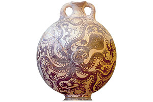 Asimismo, ensayaron una clase de decoración especial, particularmente en los jarrones de Camares, donde el color se asoció a la figura de pulpos, que dan la sensación de un movimiento continuo.