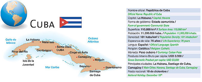 Es la mayor isla de las Antillas y posee interesantes destinos turísticos, como sus playas tropicales y atractivas cavernas. También es famosa por su alto nivel educacional y de salud. Sin embargo, su economía, basada en la industria azucarera, ha sufrido severas restricciones comerciales agravando su aislacionismo.