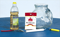 – Agrega vinagre sobre el bicarbonato.