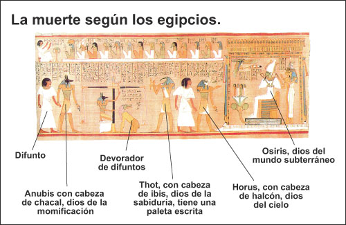 Para los egipcios, la preocupación religiosa se extendía después de la muerte. De aquí el culto sumamente especial y fervoroso que rendían a los difuntos. Este pueblo creía firmemente que, después de morir, el alma del hombre viviría feliz solo si se daba un tratamiento especial al cadáver para preservarlo de la corrupción. De esta manera, perfeccionaron el proceso de conversión llamado embalsamamiento, por el cual convertían los cadáveres en momias que colocaban en sarcófagos. Estos se decoraban con mayor o menor suntuosidad, dependiendo de la jerarquía social del muerto.