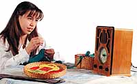 niña escuchando radio
