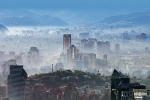 Este tipo de smog se desarrolla, especialmente, en ciudades con mucho tráfico, soleadas y con poco movimiento de aire producto de zonas montañosas cercanas. Tal es el caso de la capital de Chile, Santiago.