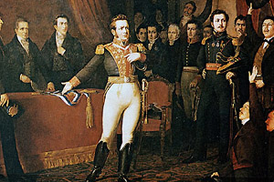 En el Salón Principal del Consulado, el Director Supremo de Chile Bernardo O’Higgins abdica el mando de la nación.